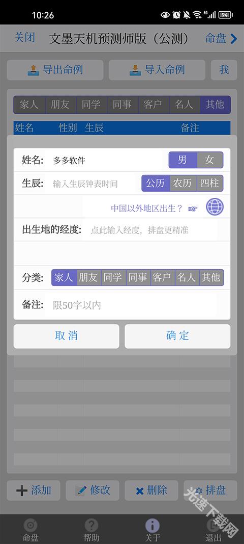 2、在排盘页面,点击右下角的“快捷排盘”按钮,弹出生辰输入窗口输入生辰后点击“排盘”按钮即可快速排盘。如果您希望保持此命盘,可以在输入生辰的同时选择“保存到命例库”为“是”,然后指定分类,即可直接将此盘存入命例库,无需切换到命例库页面操作。点击“排盘”即可 (如下图所示)