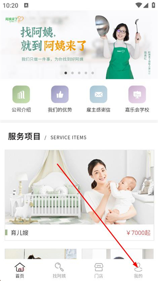 1、打开阿姨来了,点击底部导航栏中的我的选项。