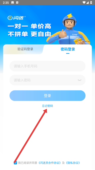 1、在打开闪送员app后,通过点击弹窗中的同意按钮,进入使用。