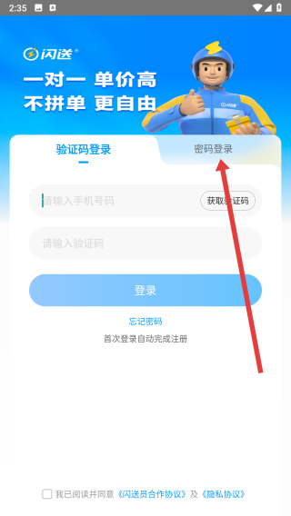 2、进入到登录页面中,可以点击密码登录,切换登录的方式。