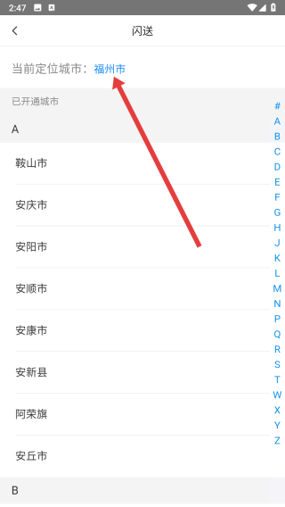 2、在跳转到城市选择页面中,点击选择当前定位城市。