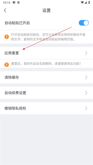 3、在设置界面中,点击应用重置选项,会弹出提示框。