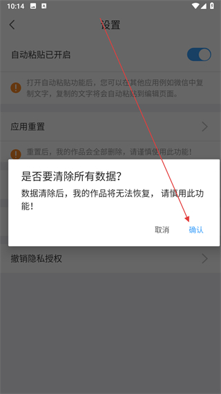 4、确认进行应用重置,点击提示框里的确认按钮,即可完成操作。