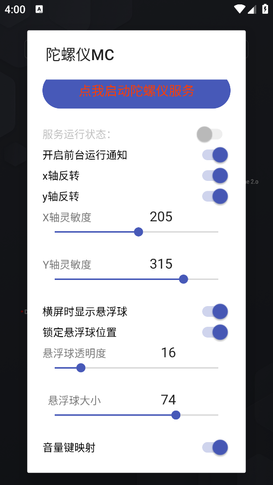 陀螺仪MC工具箱是一款功能强大的手机游戏陀螺仪校准软件,在这款软件中用户可以轻松的管理自己的陀螺仪设置数据,让你轻松的进行高精准度的操作,在游戏中获得更多的优势。