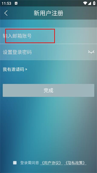 3、在新用户注册页面,输入需要登录的邮箱账号。