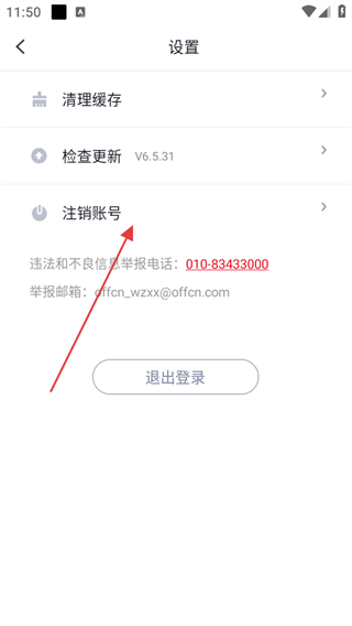 3、进入设置页面后,点击注销账号选项。
