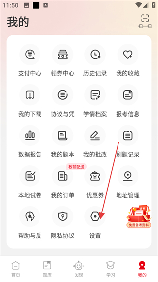 2、在我的页面中,找到并点击设置选项。