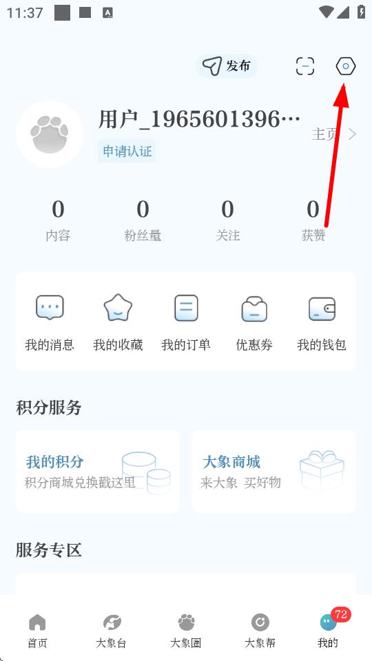 2、在个人页面右上角,点击设置图标进入系统设置界面。