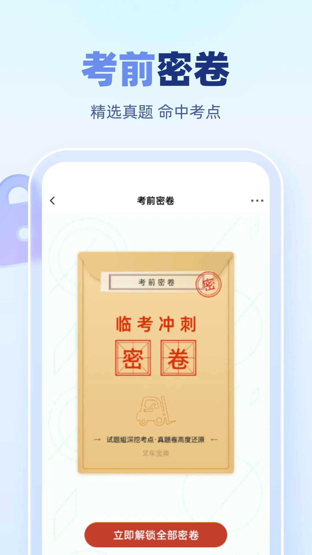 叉车宝典是一款专门给叉车驾考用户打造的学习软件,软件的题库全部紧扣大纲,还有实际操作考试讲解视频,能够让你轻松学习,有考前密卷,能够让你在线刷题,软件有业内专家进行试题解析,帮助你更好的理解知识点,支持线上模拟考试功能,在线上考试就可以查漏补缺,还有资深专家预测考点,练习绝密精选真题,有章节/专项/错题集练习,掌握薄弱点。