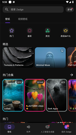 1、打开Zedge应用,点击底部我的Zedge,进入个人页面。