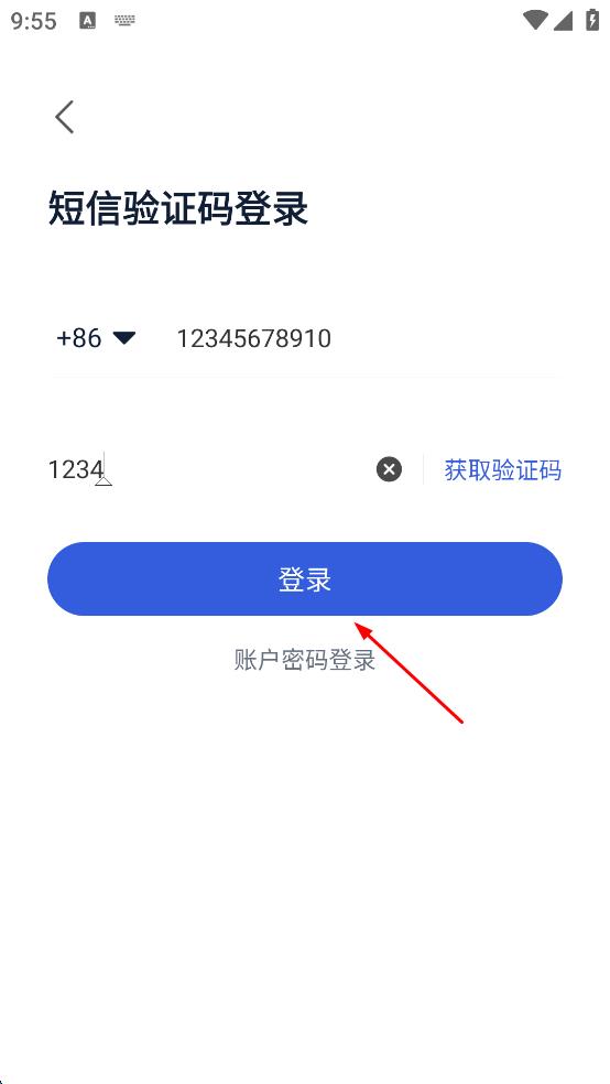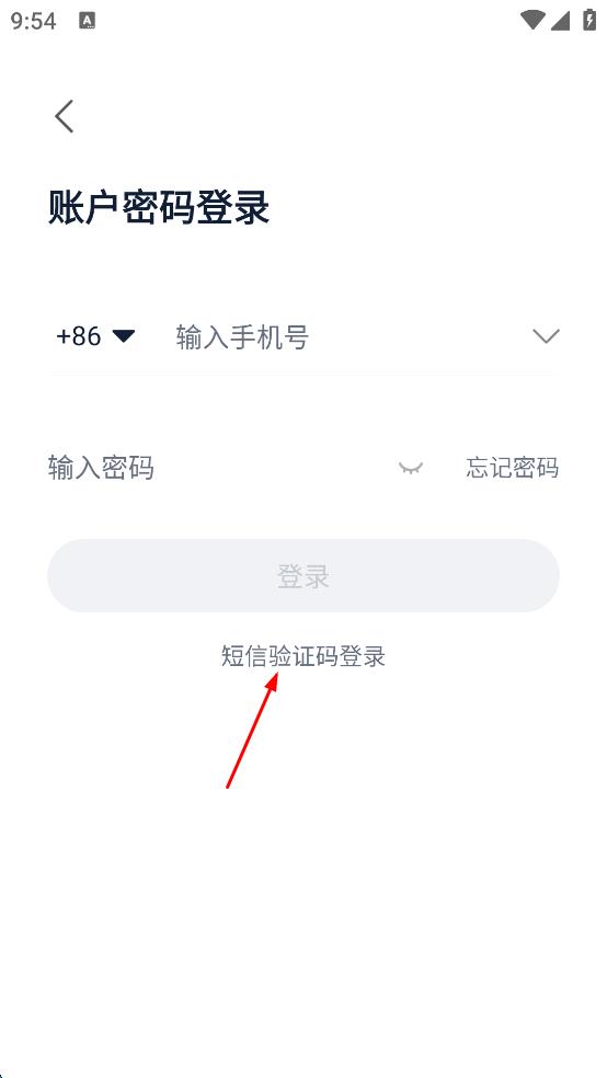 2、在账户密码登录界面中,点击“短信验证码登录”,切换到短信验证码登录页面。