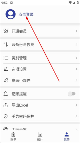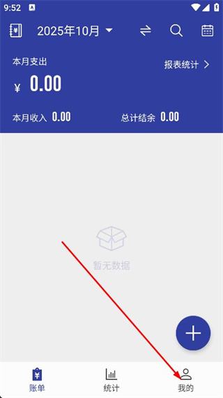 1、打开简约记账,点击底部导航栏最右侧我的选项。