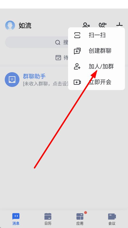 1、打开如流APP,点击底部导航栏中的消息选项进入消息界面。