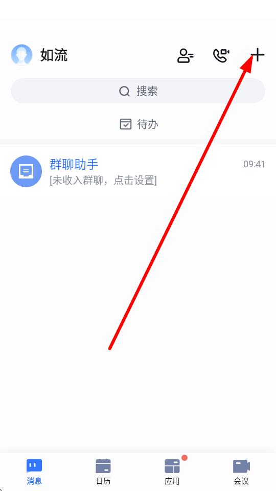 2、在消息界面右上角,点击+号图标。