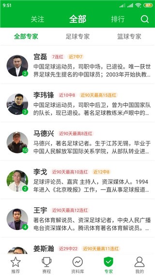 4、点击专家,可以查看众多前运动员,记者专栏;