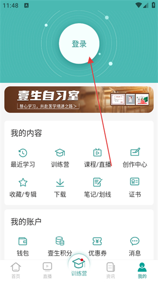 1、打开壹生APP,进入首页后,点击底部导航栏中的我的选项。