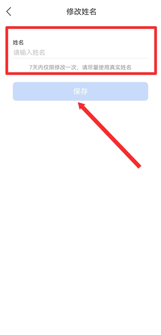 3、在修改姓名页面,输入新姓名后点击保存,完成名字修改操作。