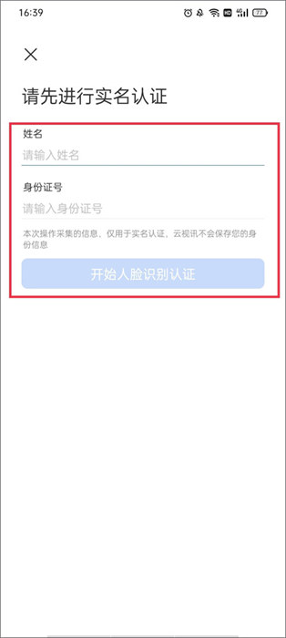 2、接下来,输入姓名和身份证信息进行人脸识别操作;