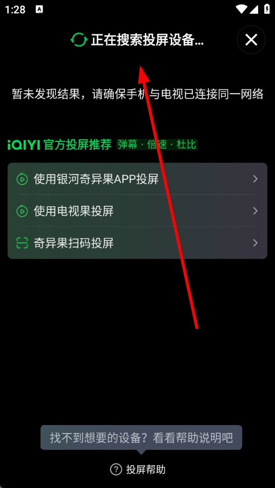 3、将手机与电视或电视盒子连接至同一Wi-Fi网络,等待系统搜索到可用投屏设备后,点击后,即可将视频同步投屏到大屏播放。