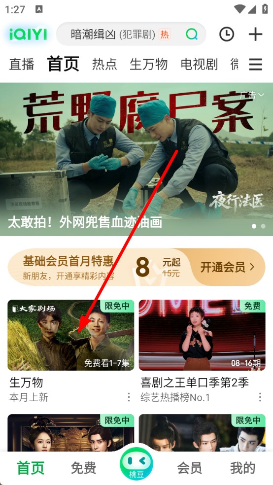 1、打开爱奇艺APP,在首页推荐区域找到想要投屏的视频,点击视频封面进入播放页面。