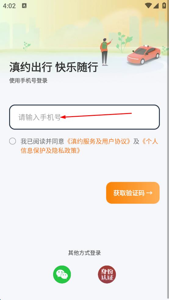 3、在登录页面的“请输入手机号”栏输入要登录的手机号码,然后勾选同意协议。