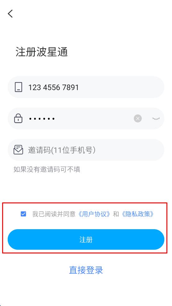 3、请输入密码栏设置密码,若有邀请码,在邀请码栏输入,没有则可不填。