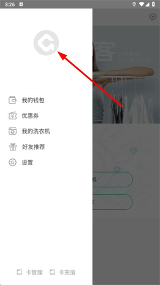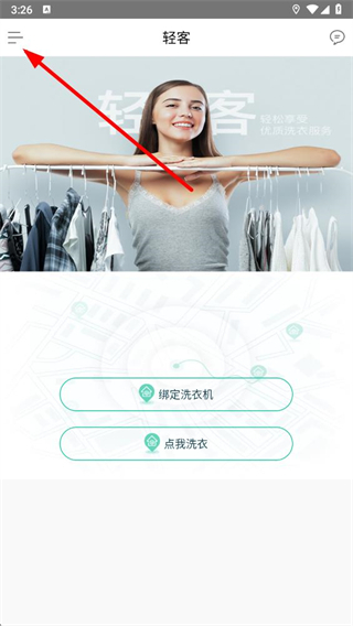 1、打开轻客洗衣app,点击左上角的三条横线图标,打开侧边菜单栏。