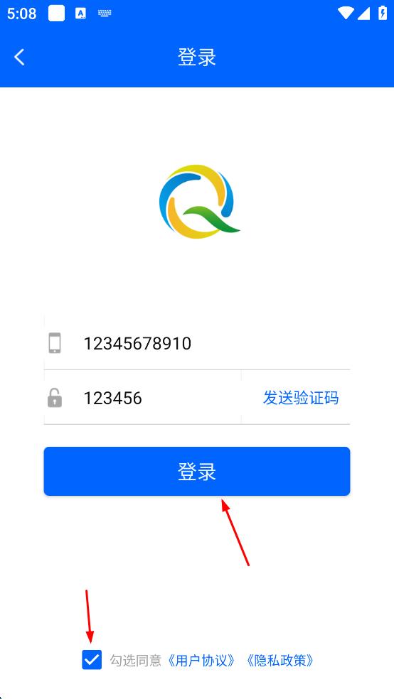 4、勾选勾选同意用户协议,隐私政策,然后点击“登录”按钮。