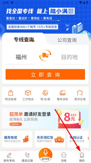 1、打开陆小满物流助手app,点击底部导航栏中我的图标。