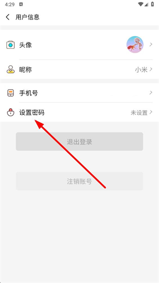 3、在用户信息页面中,找到设置密码选项并点击进入。