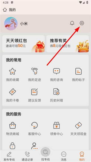 2、在我的界面,点击右上角齿轮状的设置图标,进入用户信息页面。