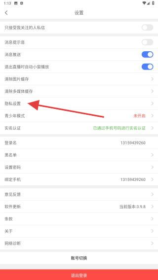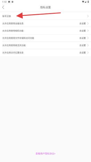 4、在隐私设置页面内,点击账号注销的按钮即可。