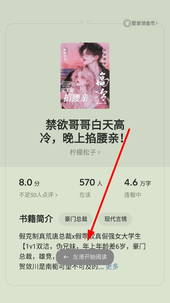 2、进入小说详情页左滑开始阅读,或点击对应阅读按钮进入阅读界面。
