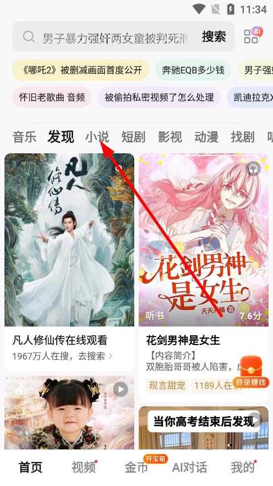 1、打开悟空浏览器点击小说栏,浏览找到心仪小说。