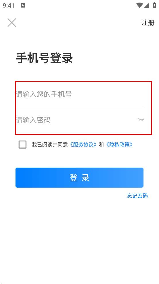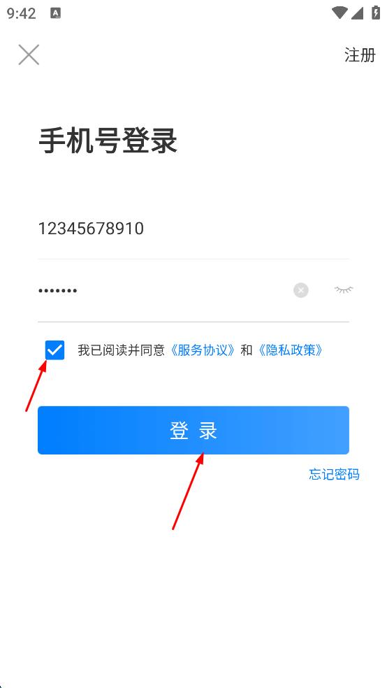 4、勾选我已阅读并同意服务协议和隐私政策,然后点击蓝色的“登录”按钮。