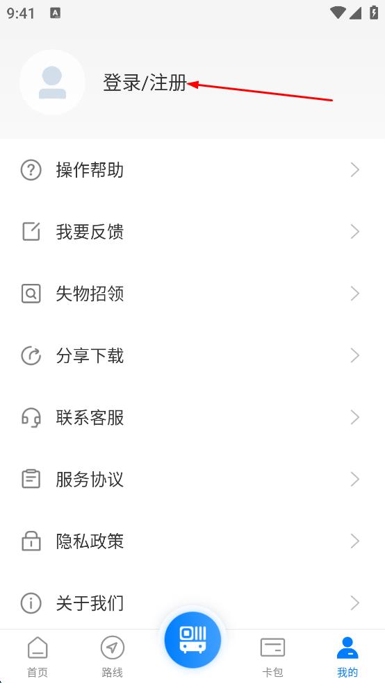 2、在“我的”页面,找到上方的“登录/注册”按钮,点击该按钮。