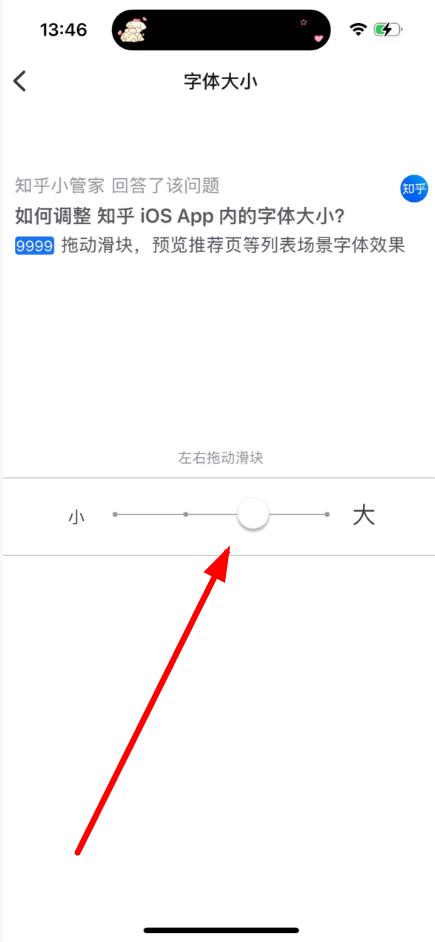 3、左右拖动字体大小设置页的滑块,调整至合适的字体大小。