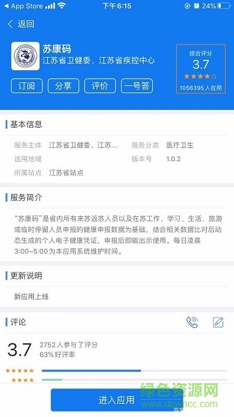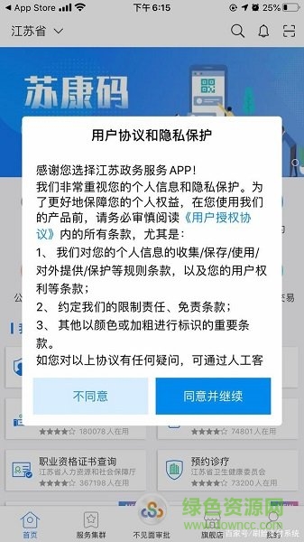 1、首先在本页面下载苏康码app,成功安装到手机上之后,打开APP点击“同意并继续”,如下图