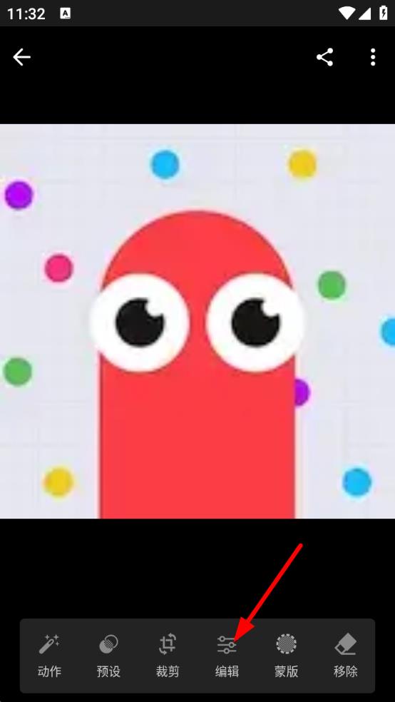 2、点击底部功能栏中的编辑按钮,进入照片编辑界面。