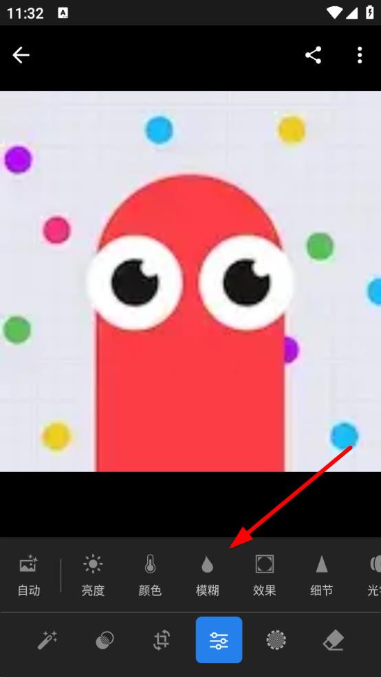 3、在编辑界面中,通过自动、亮度、颜色、模糊、效果、细节、光等功能选项,对照片进行相应编辑调整,以达到满意效果。