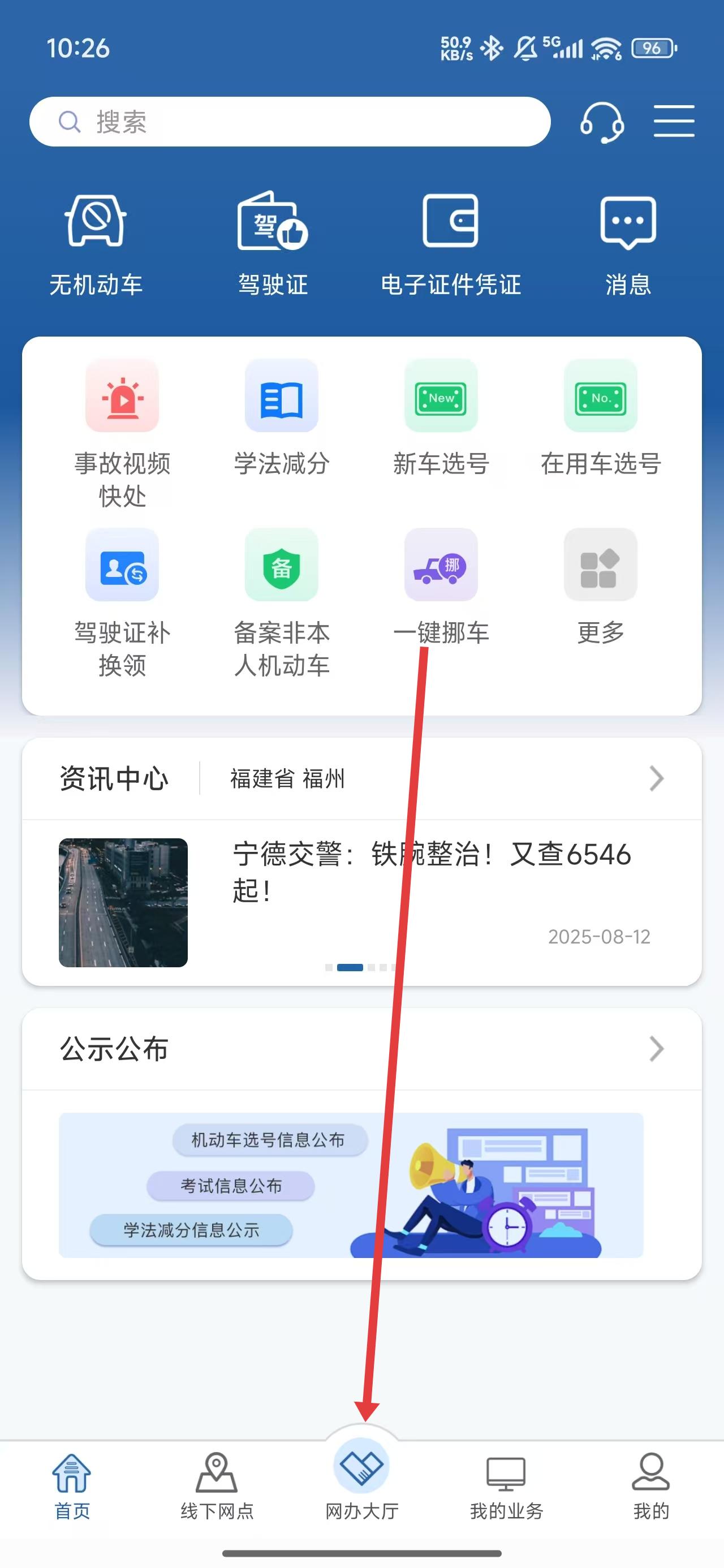 1、点击网办大厅按钮,即可进入查看更多的业务信息选项。