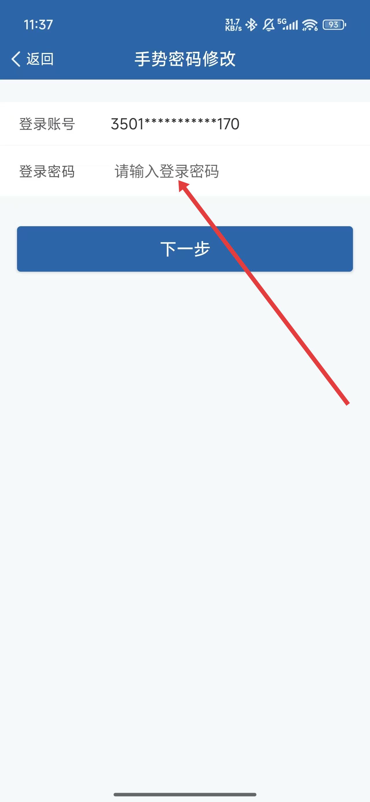 4、在跳转到手势密码修改页面中,可以输入登录密码后,进行修改设置操作。