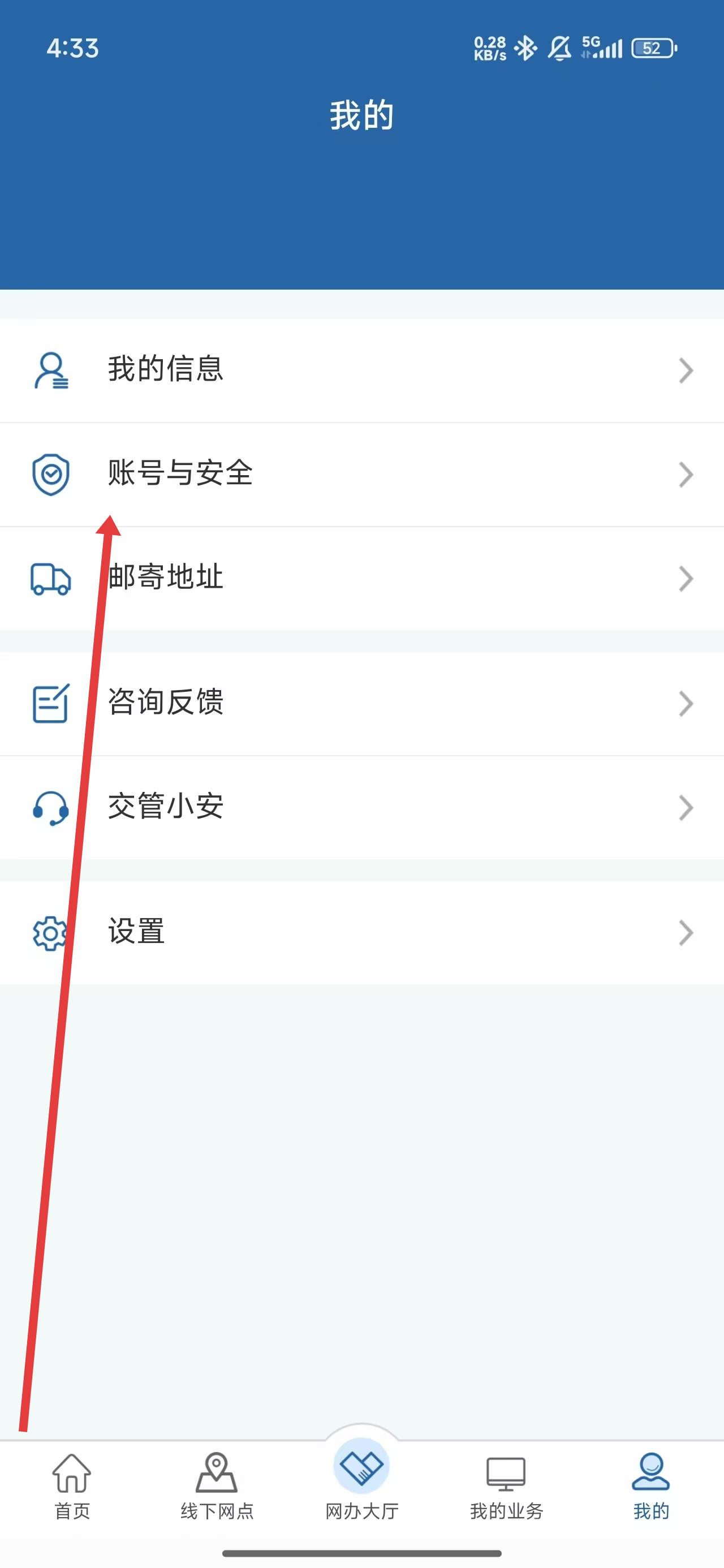 2、可以点击我的页面下的账号与安全按钮,进入查看更多功能选项。