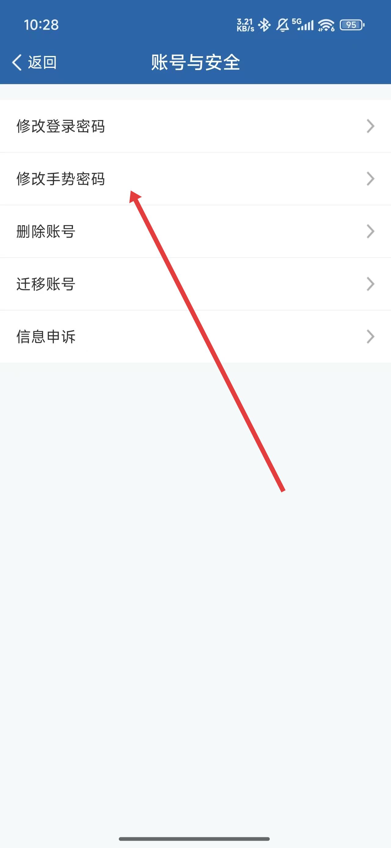 3、在进入到我的账号与安全页面后,找到并点击修改手势密码选项。