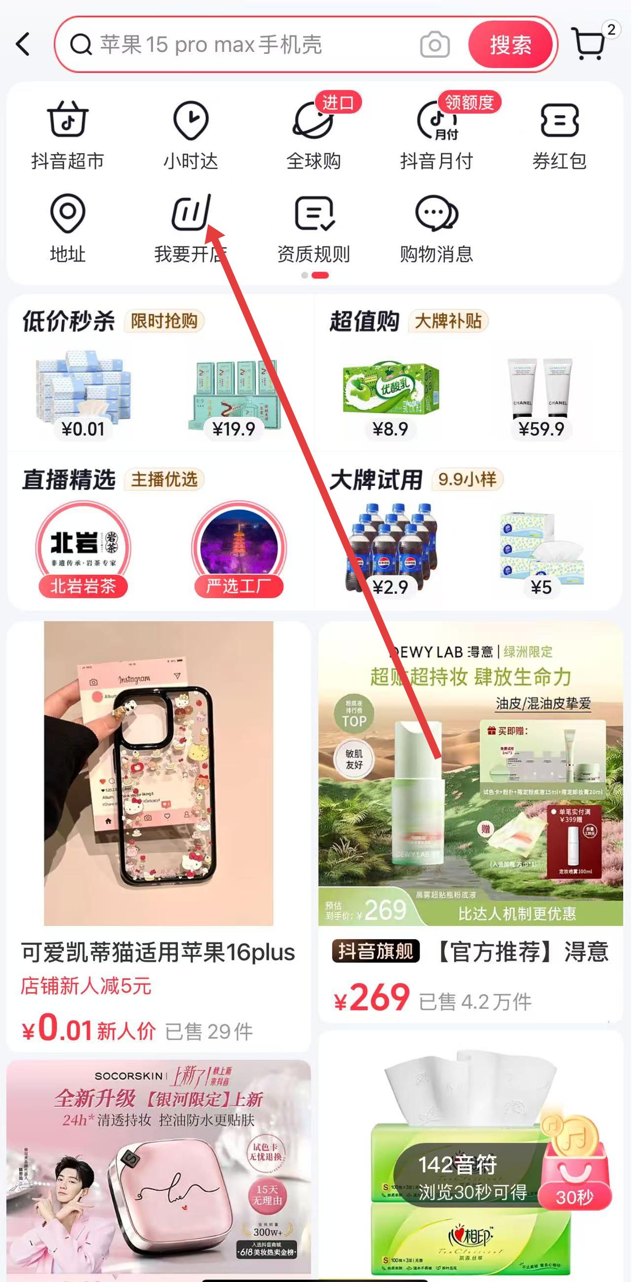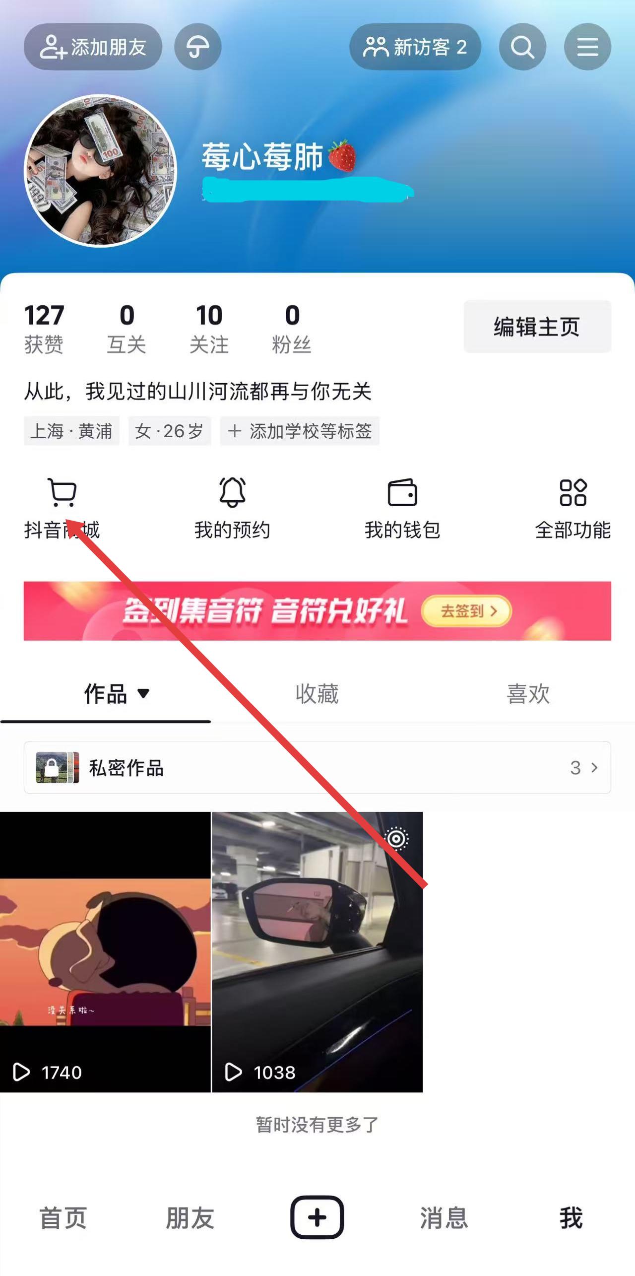 1、打开抖音个人主页,点击抖音商城,进入商城界面后,选择我要开店,进入抖店入驻通道。