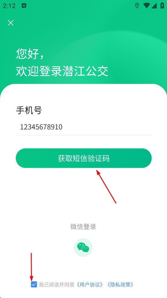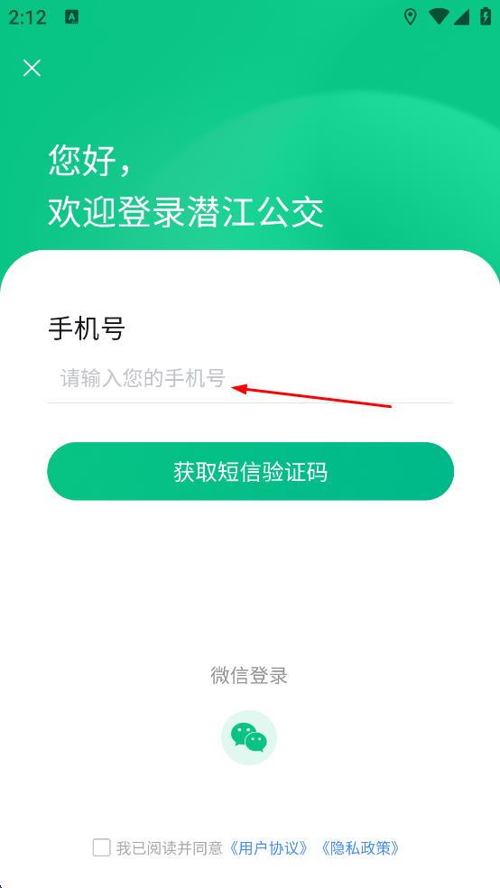 2、在登录相关页面,输入手机号码,勾选“我已阅读并同意用户协议,隐私政策。