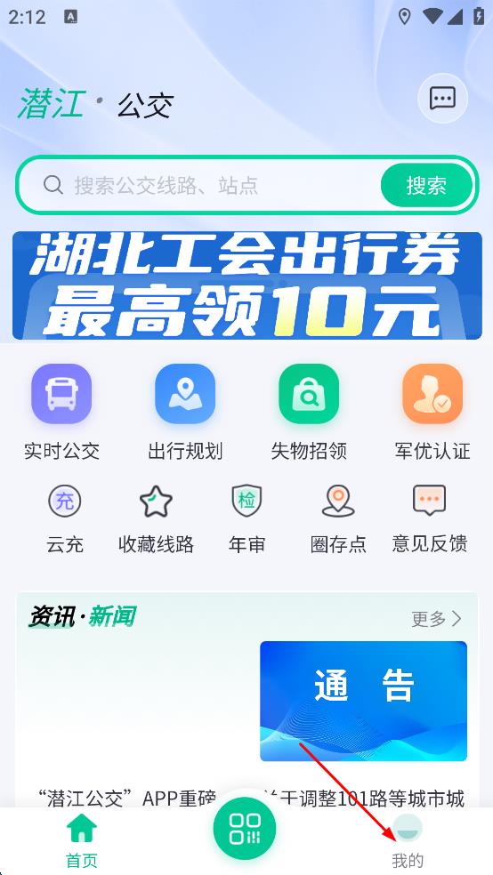 1、打开潜江公交软件,点击页面右下角“我的”选项,进入登录相关页面。