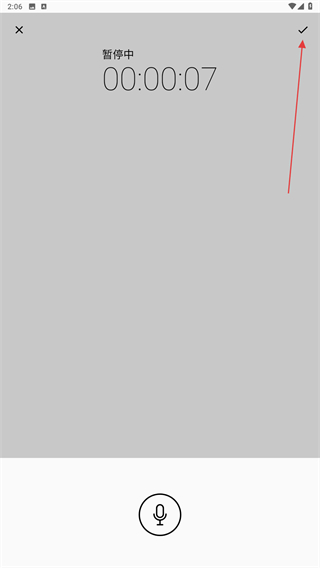 4、录制结束后,点击右上角打钩的功能图标进行保存改音频。
