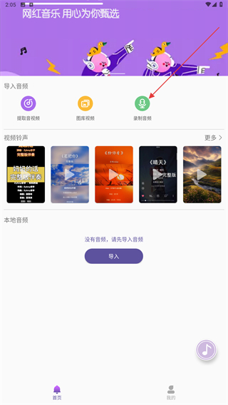 1、打开66铃声APP,进入首页点击录制音频的功能按钮。