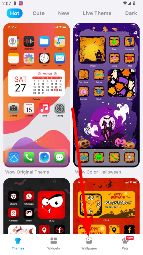2、在主题界面中点击底部的Wallpaper壁纸选项,浏览各类壁纸。